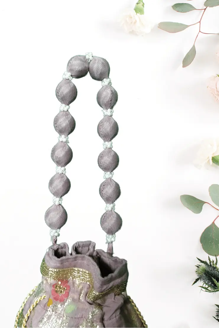 Each potli bag is lovingly handcrafted, from the careful selection of rich fabrics and exquisite embellishments to the final finishing touch.