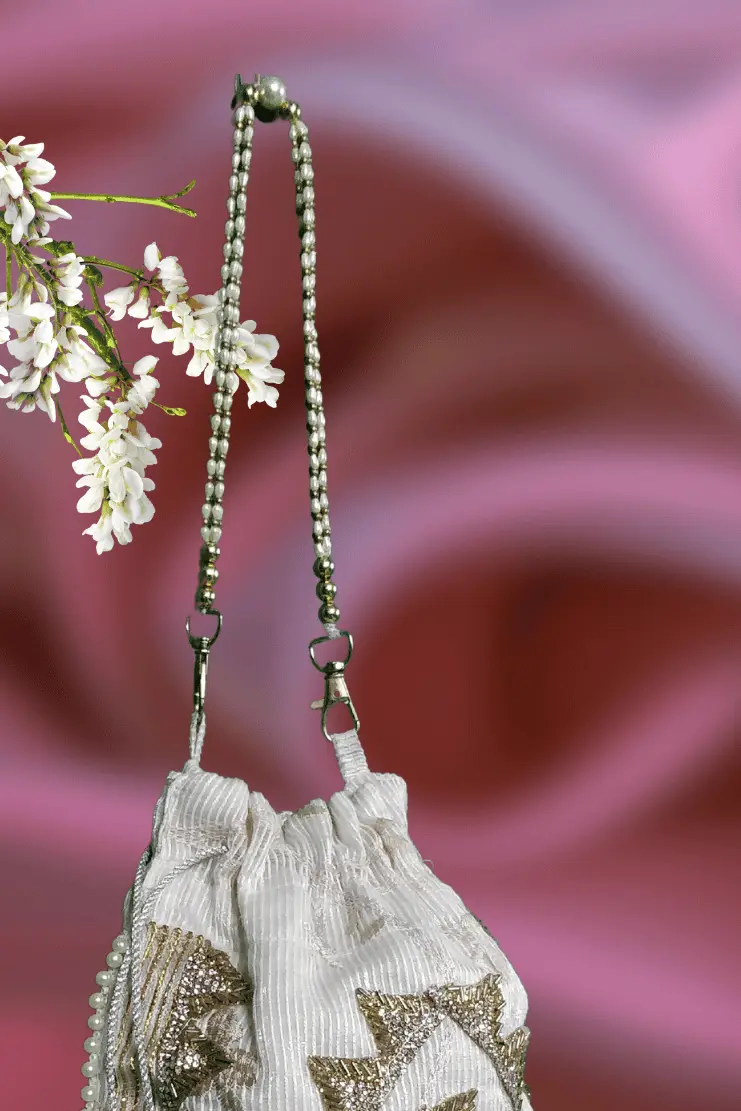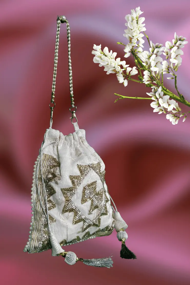 White Golden Potli Bag